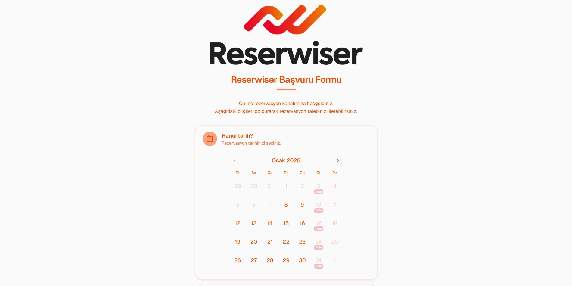 Günümüzde müşteriler, işletmelere ulaşmadan kendi rezervasyonlarını oluşturabilmeyi bekliyor. Bu beklenti, online rezervasyon sayfası kullanımını bir zorunluluk haline getiriyor. Reserwiser, modern işletmeler için geliştirdiği online rezervasyon sayfası ile müşterilerinize 7/24 kolay ve hızlı rezervasyon deneyimi sunarken, işletmenizin operasyonel verimliliğini de artırıyor.